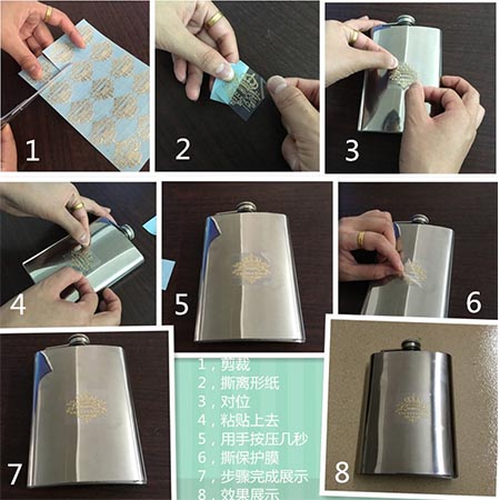 首先把鎳標圖案(logo)表面離型紙撕開,將圖案對準需轉(zhuǎn)印的位置,然后用手在透明膜上輕按幾下,再用指甲在透明膜背面刮動幾下,撕開透明膜,圖案即完成轉(zhuǎn)印,如果是貼在PU(或真皮皮具)需要熱壓的,鎳標離開離型紙撕開,貼到要粘的位置(或凹位)在進行熱壓,壓好冷切后,撕開透明膜。